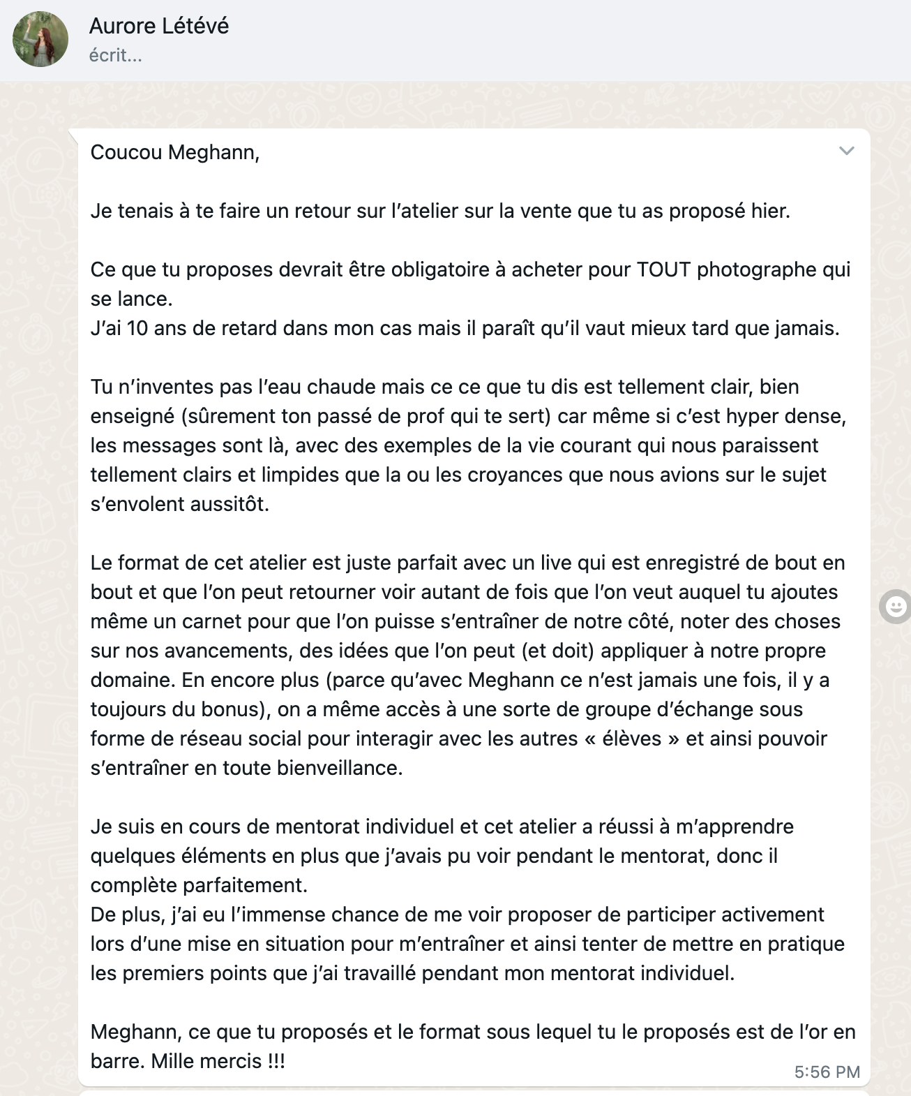 Je mets aujourd'hui à ton service mes compétences pédagogiques, mes connaissances business, mon expérience entrepreneuriale, et l'expérience de la formation de centaines de photographes.